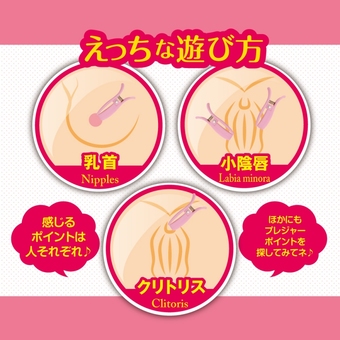 えっちなオトナの必需品♪ いつものプレイにプラスするもう1アイテムとしてもオススメ。 大きい乳首も挟めるバネ式クリップとプレイに集中できるワンプッシュで簡単操作のコントローラー。 カラーは、かわいいピンクとシックなブラックの2色展開。 オールシリコンコーティングでお肌にも優しく、それでいてきちんと刺激してくれます。 静音性もバツグンなので、こっそりプレイもできるかも? 乳首だけでなく、他の場所もつまんで調教しちゃおう♪ 【付属品】 本体、単4電池×2本(動作確認用) ・7振動 ・静音設計 ・オールシリコンコーティング パッケージサイズ(mm):H227×W105×D35 本体サイズ(mm):コントローラー全長:100mm/クリップ全長:53mm/コード全長:約940mm 原産国:中国 材質:ABS、シリコン