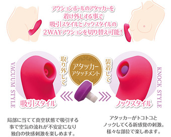 ただの振動では無くトントンと心地良く叩かれる感触は快感ビート! アタッカーアタッチメントを外せば吸引ローターとしても楽しめる2WAYスタイルアイテム! 乳首やクリ等に当ててトコトコ直刺激を楽しむor吸引快感を楽しむ! 新時代の新機構が新しいビートを刻むぜ!! 充電用USBケーブル付属 パッケージサイズ(mm):H150×W95×D45 本体サイズ(mm):H130×最大径37
