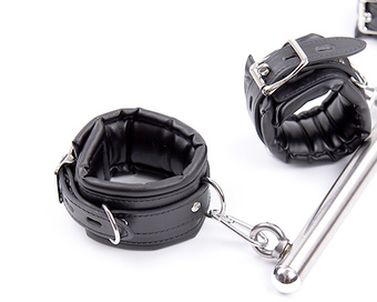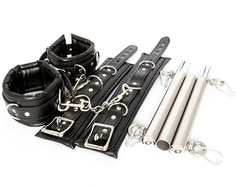 ずっしりとした重量感のある本格的な拘束棒、手枷、足枷のセット商品です。