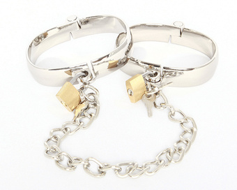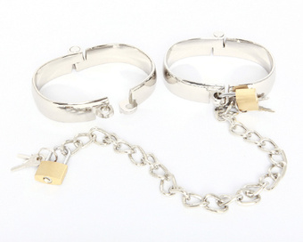 鏡面仕上げで美しく、シンプルなデザインの金属製足枷。金属ならではの重量感があり、しっかりとホールドされます。