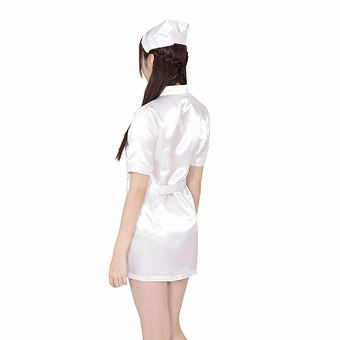 "光沢サテン生地を使用。なめらかな手ざわりが魅力のホワイトナース★"
