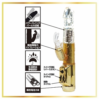 スイング・パール回転&強力振動バイブレーター! ●パワースイング+パール回転 ●クリバイブ強力振動 ●生活防水 ●静音設計 ●柔らかなエラストマー素材 パッケージサイズ:22.0×7.5×4.5 cm 本体サイズ:全長21.5 cm 太さ3.0Φ cm 定価:3,500円(税別)