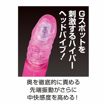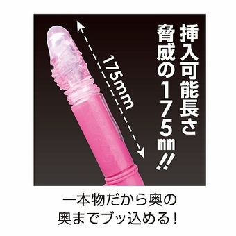 とにかく奥深くまで突き上げながら、さらに奥を振動シゲキ! どこまでも奥の絶頂Gスポットにこだわった唯一無二のピストンバイブ! スイングピストンアクションは8パターン! マイクロヘッドモーター振動パターンは36パターン。 パッケージサイズ:25.7×7.0×5.0cm 本体全長25.3cm 最大径3.2Φcm 挿入可能部:17.5cm 挿入径:3.2cm 定価:3,200円(税別)