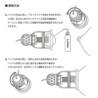 「金属ギア」搭載! ニップルドーム【R】登場! 静かに、ゆっくり、力強い回転が止まらない!大幅機能アップ! 回転機構を進化させ、さらにスローに、よりパワフルな動きを実現! アタッチメントの根元まで押しつけた乳首を、深くねぶって停まらない高トルク。 バストトップに吸い付くバキューム感とあわせて、未体験の快感が全身を駆けめぐります。 ●10段階パワー調節×10種類の回転パターン ●最強・最速の回転を繰り出す「ターボモード」 パッケージサイズ:H18.0×W24.5×D9.0cm サイズ:H11.2×W6.8×D6.8cm コントローラ:H6.0×W4.5×D2.3cm 総重量:449g 定価:9,800円(税別)
