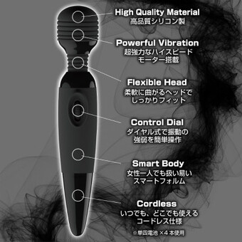 単四電池式のコードレスだからいつでも何処でも使えちゃう♪ コード式のマッサージャーにも負けない超強力振動で確実にイカせます。 ●ダイヤル式強弱調整 ●静音設計 ●シリコン製 ●市販の4.5Φcmヘッド用のアタッチメントが装着可能 パッケージサイズ:26.5×6.0×5.0cm 本体:全長25.0cm ヘッド直径4.5Φcm